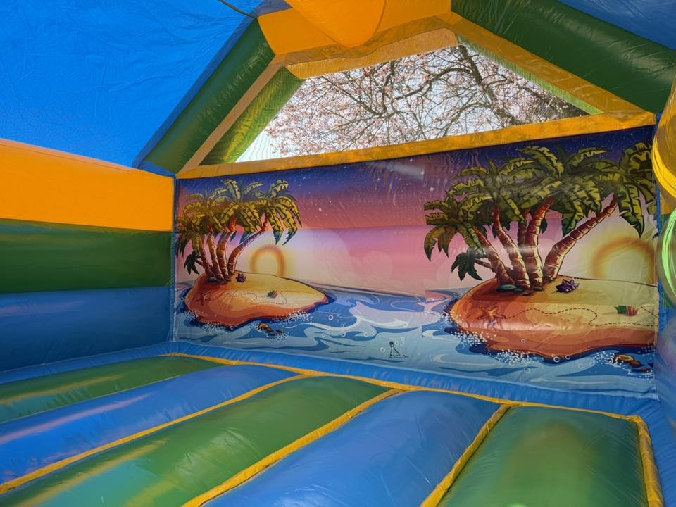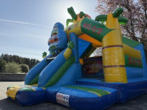 Een super vrolijk springkussen welke een enorme aantrekkingskracht op kinderen heeft. De mooie kleuren zorgen er voor dat het springkussen direct opvalt op elk evenement. Met de toegevoegde glijbaan ontstaat er nog meer speelplezier en zullen de kinderen zich nog langer vermaken op het springkussen.