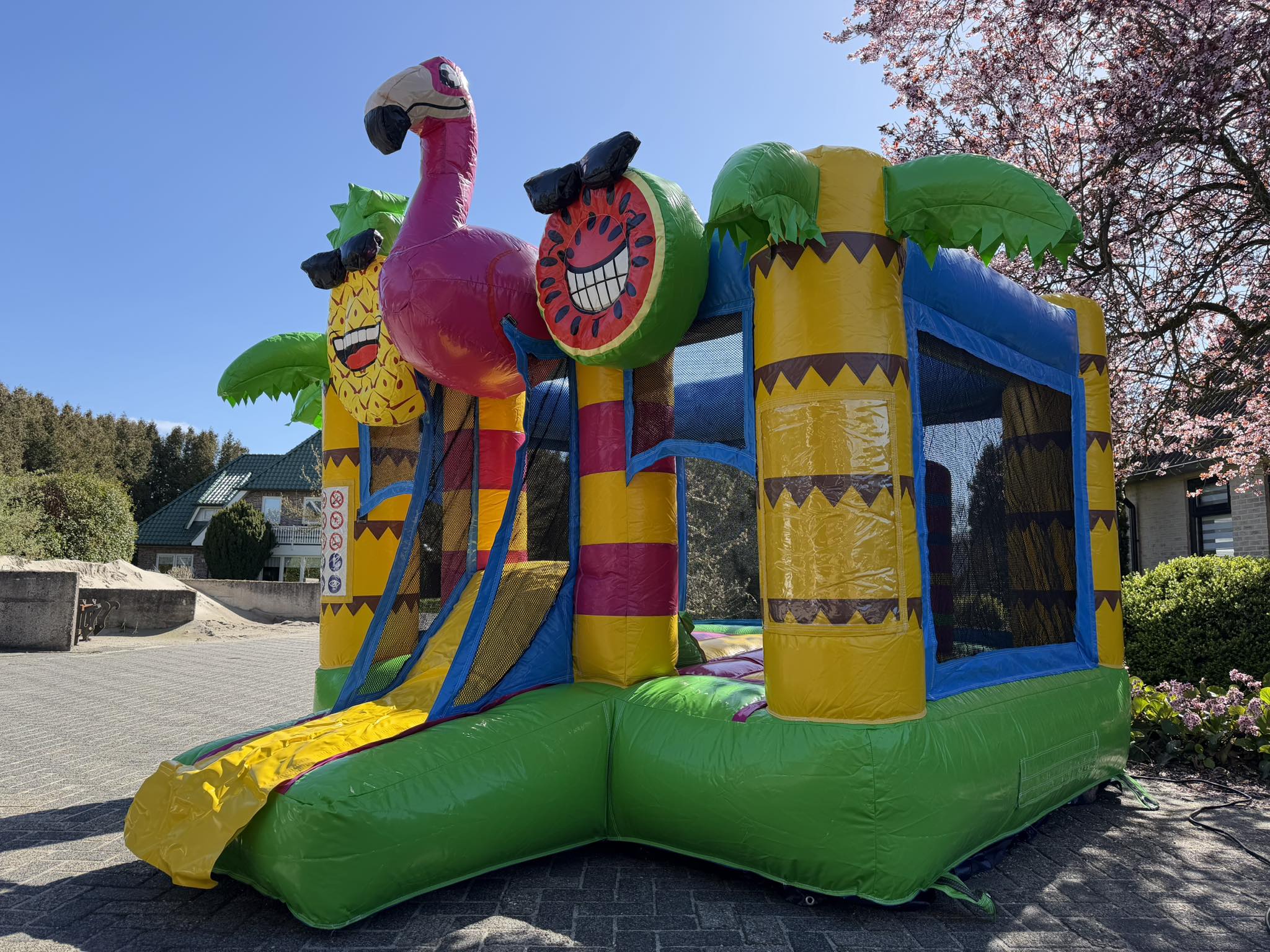 Springkussen Mini Bounce Flamingo met glijbaan.