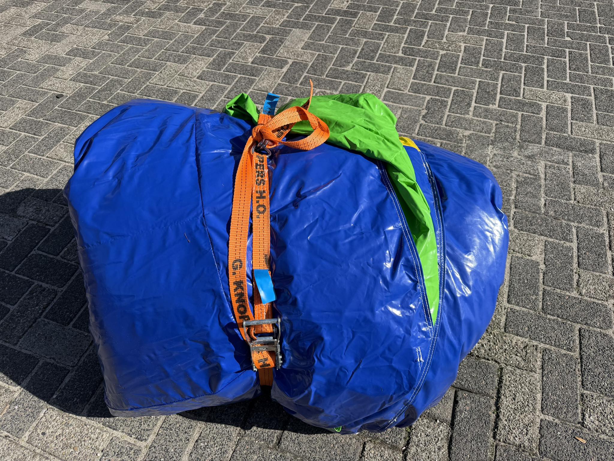 Haspel 20m1 / verlengkabel 25m1 € 5.00 incl. btw. Valmat springkussen € 5,00 incl. btw.